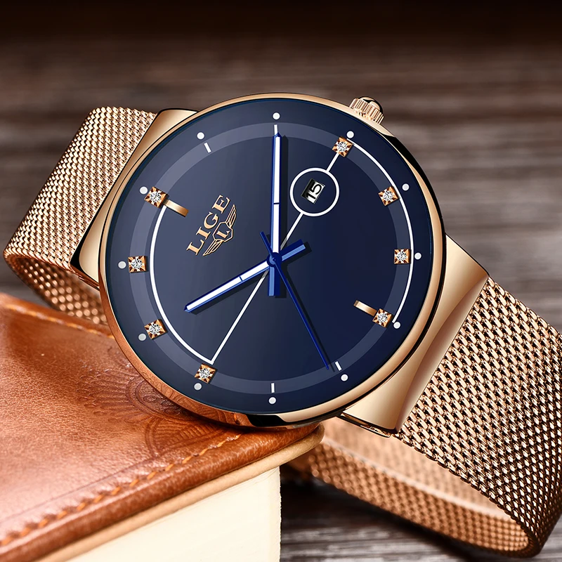 .image for LIGE Fashion Mens Watches Top Brand Luxury Ultra Thin Quartz Watch For Men Mesh Strap Waterproof Go