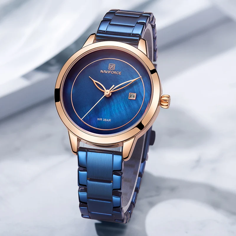 Good Chance for NAVIFORCE Women Watch Stainless Steel Lady Wristwatch Fashion Waterproof Ladies Watches Simple Blue